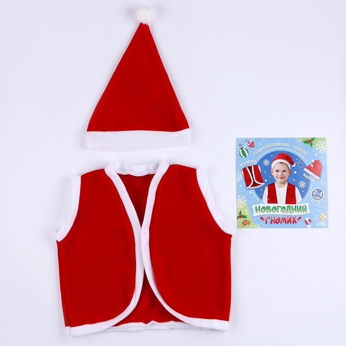 Карнавальный набор «Новогодний гномик»: жилетка и колпак, рост 92–104 см