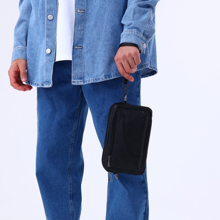 Сумка мужская через плечо, искусственная кожа, цвет чёрный