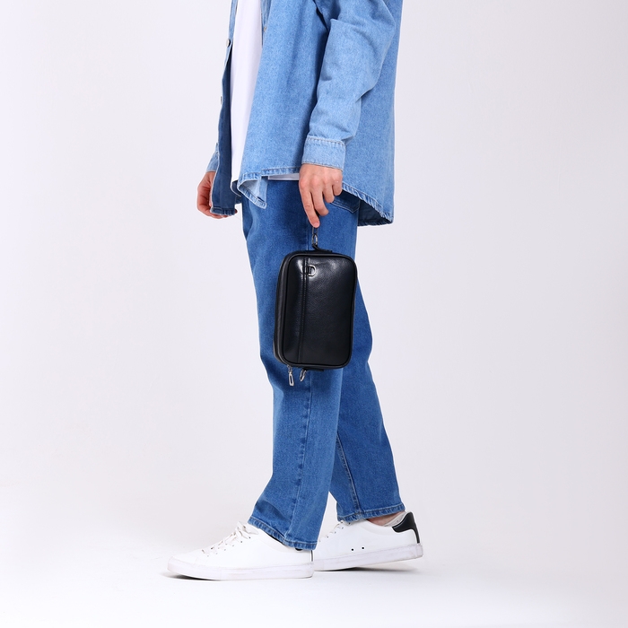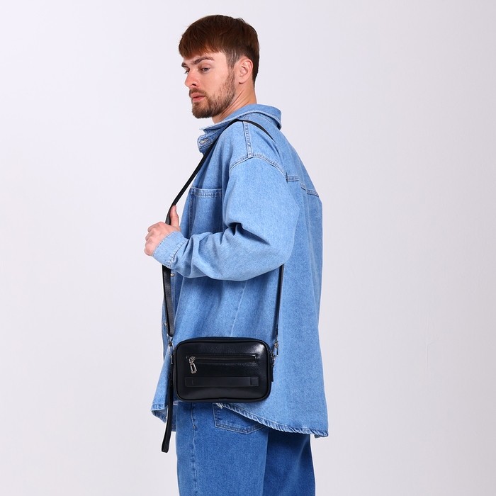 Сумка мужская через плечо, искусственная кожа, цвет чёрный