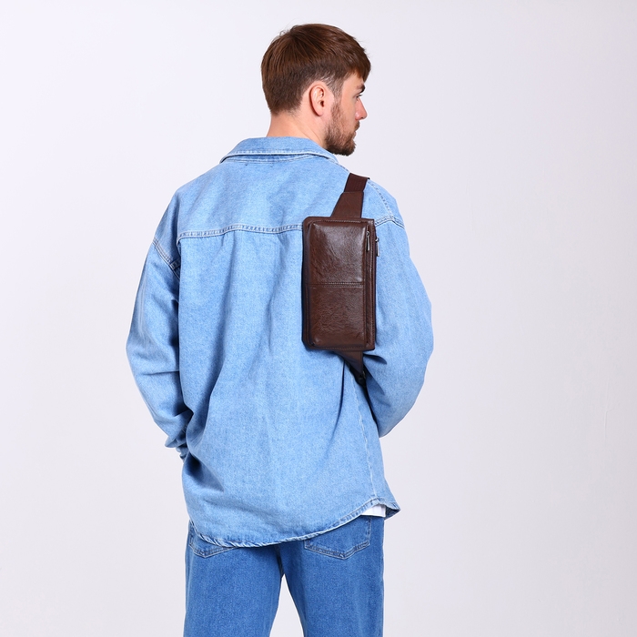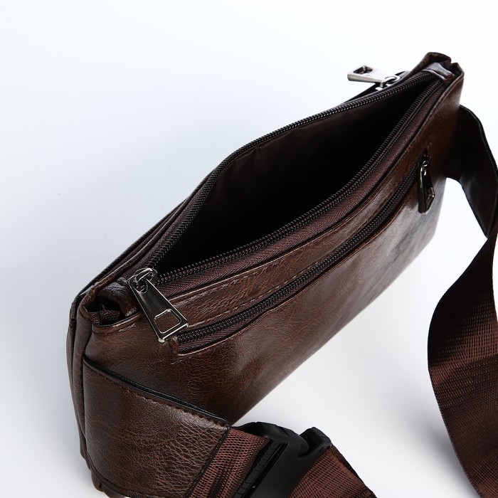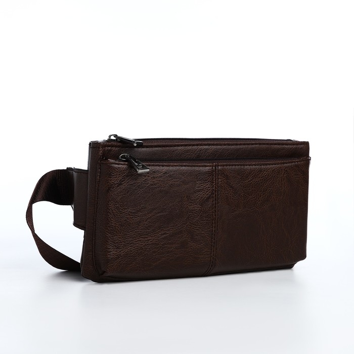 Сумка поясная на молнии, 2 наружных кармана, цвет коричневый
