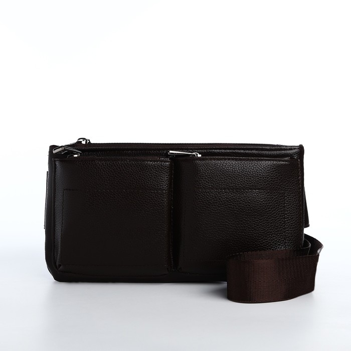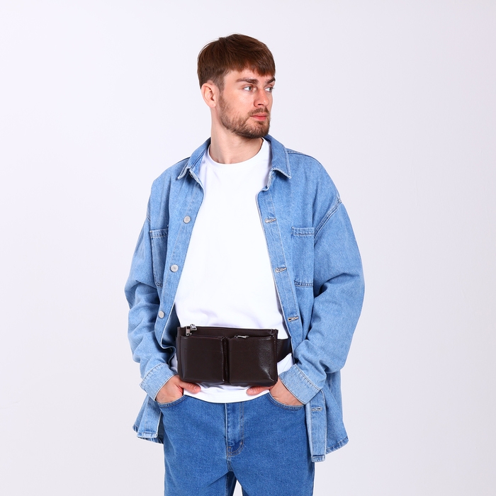 Сумка поясная на молнии, 2 наружных кармана, цвет коричневый