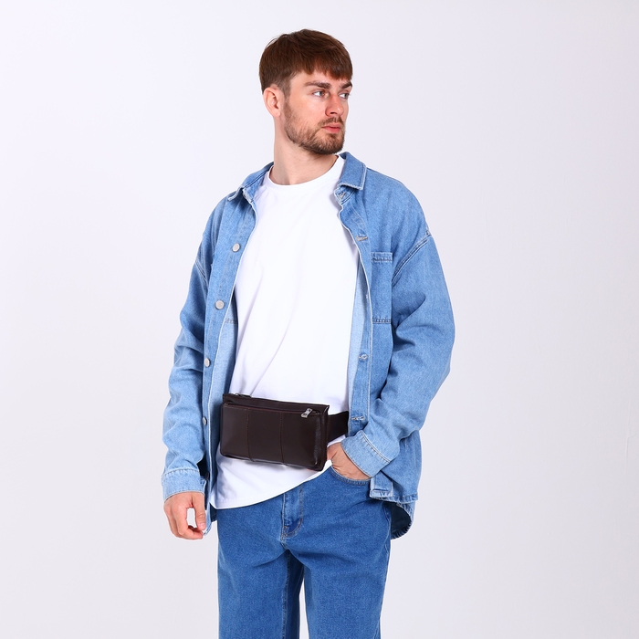 Сумка поясная на молнии, 2 наружных кармана, цвет коричневый