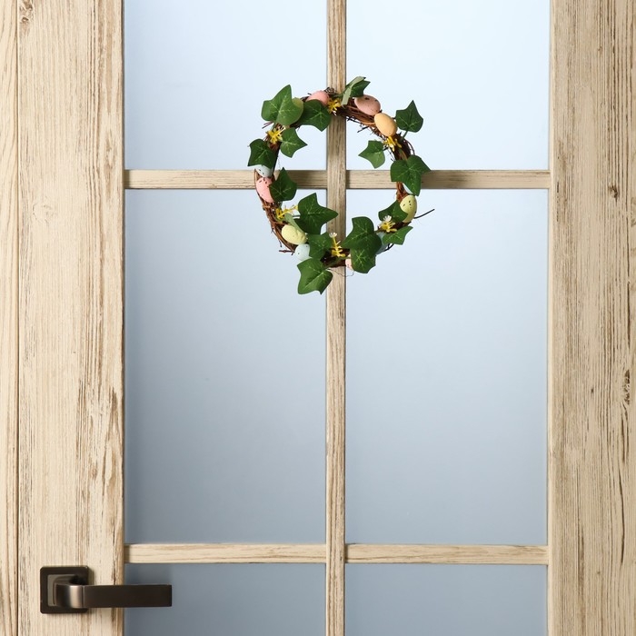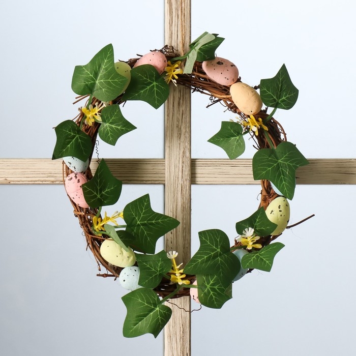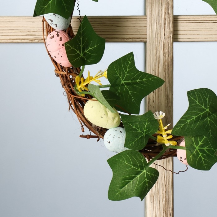 Венок на дверь интерьерный "Пасхальные яички с листочками" d=18 см