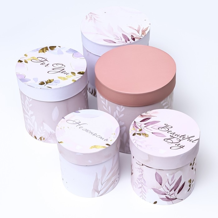 Набор круглых коробок 5 в 1 "Умиротверение" ,19,5 х 19,5 - 14 х 14 см