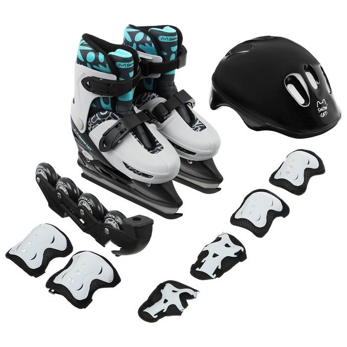 Набор: коньки детские раздвижные Snow Cat, с роликовой платформой, защита, р. 30-33