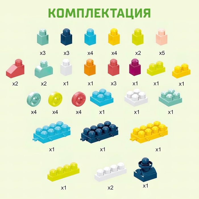 Конструктор в кейсе «Числовой поезд», 2 варианта сборки, 55 деталей, бирюзовый ящик