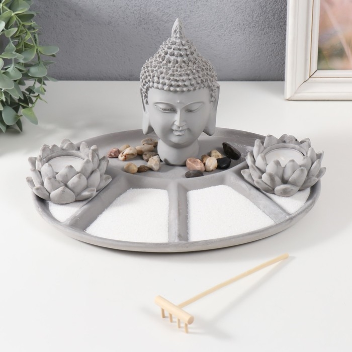 Сад камней Дзен "Будда и лотосы" 2 свечи 16,5х27х20,5 см