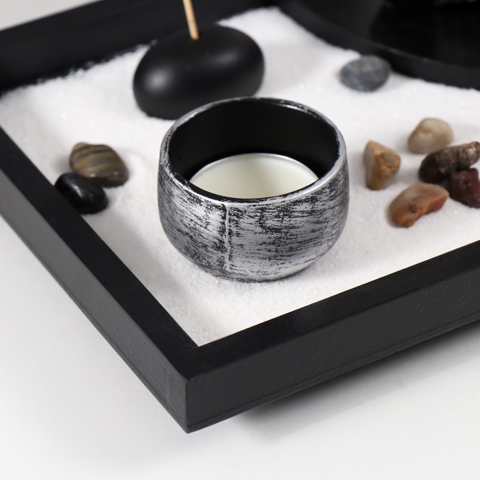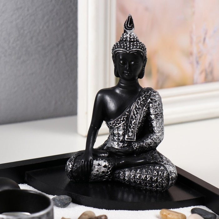 Сад Дзен "Будда в серебристом одеянии" песок+аромапалочка+камни 21,7х15,6х14,8 см
