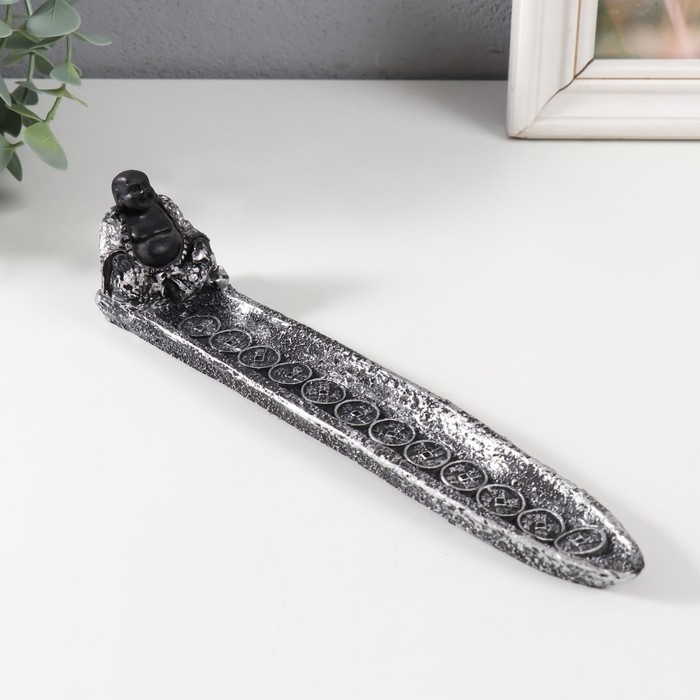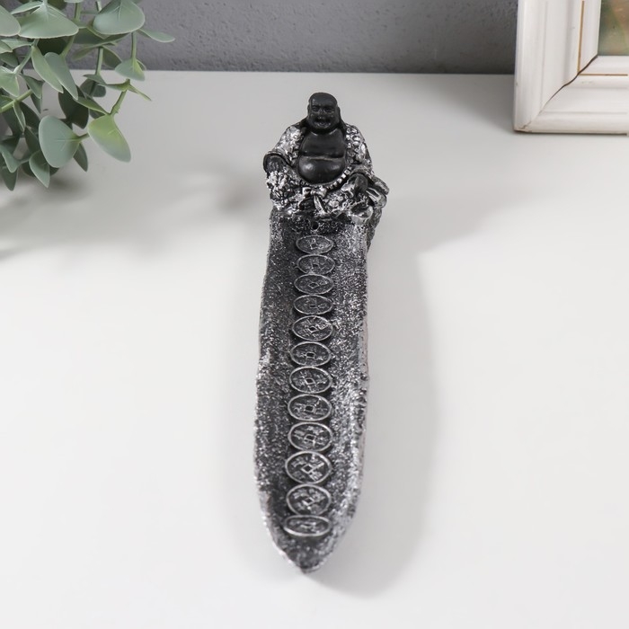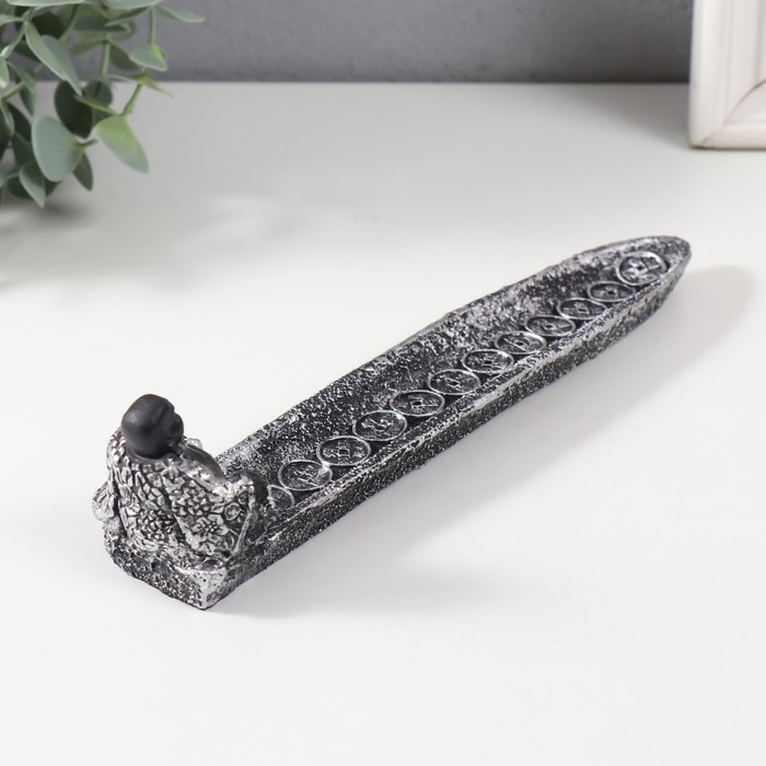 Подставка под благовония "Хотей в серебристом халате" серебро 22,5х4,5х5 см