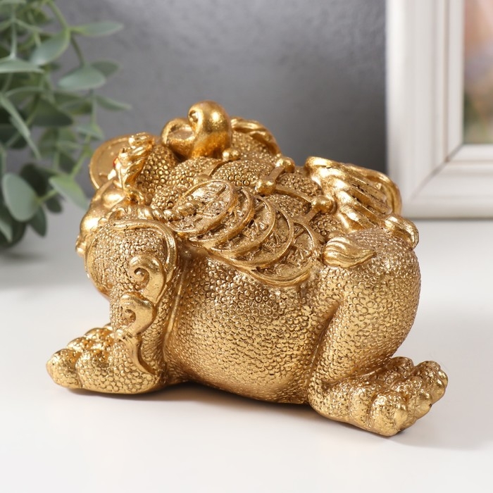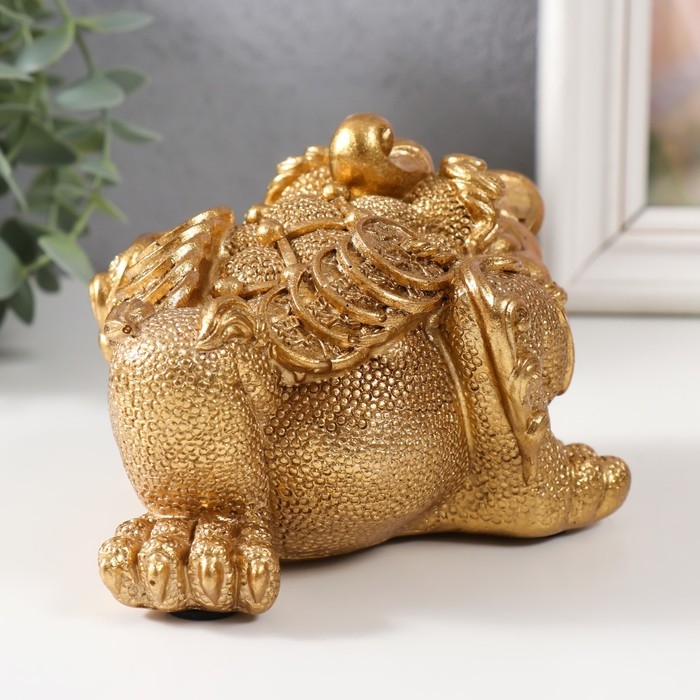 Нэцке золото полистоун "Золотая жаба с монетой" 15,7х12х9,5 см