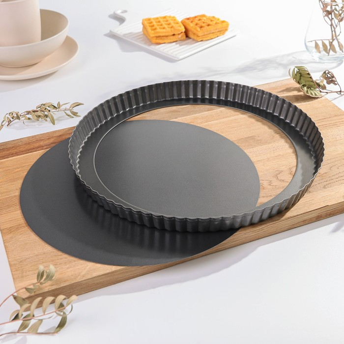 Форма для выпечки Доляна «Жаклин», d=32 см, съёмнное дно, антипригарное покрытие, цвет чёрный