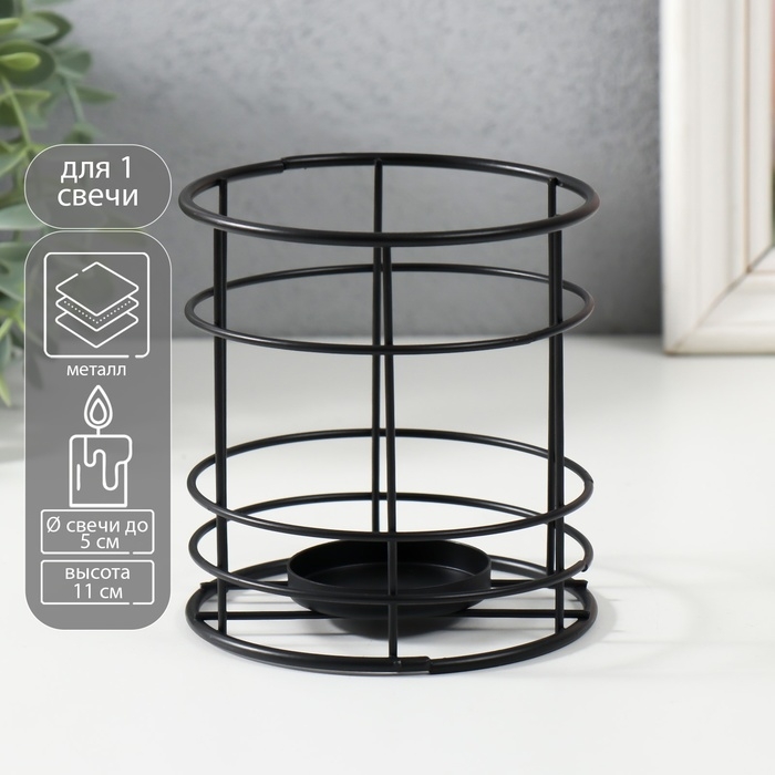 Подсвечник металл на 1 свечу 5 см "Далила" черный 10,5х10,5х11 см