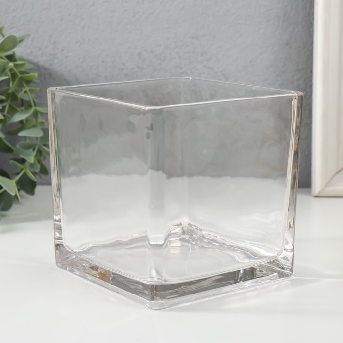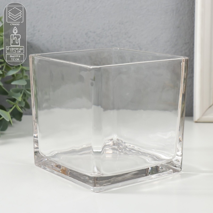 Подсвечник стекло на 1 свечу "Квадратный" прозрачный 12х12х12 см