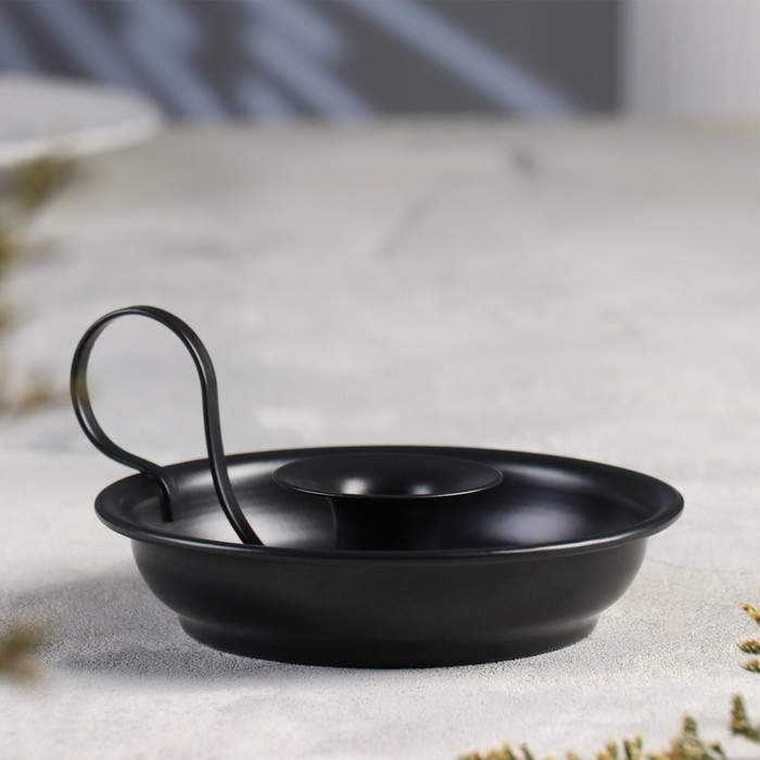 Подсвечник металлический "Тарелочка", на одну свечу, 14.2 х 6.5 см, черный