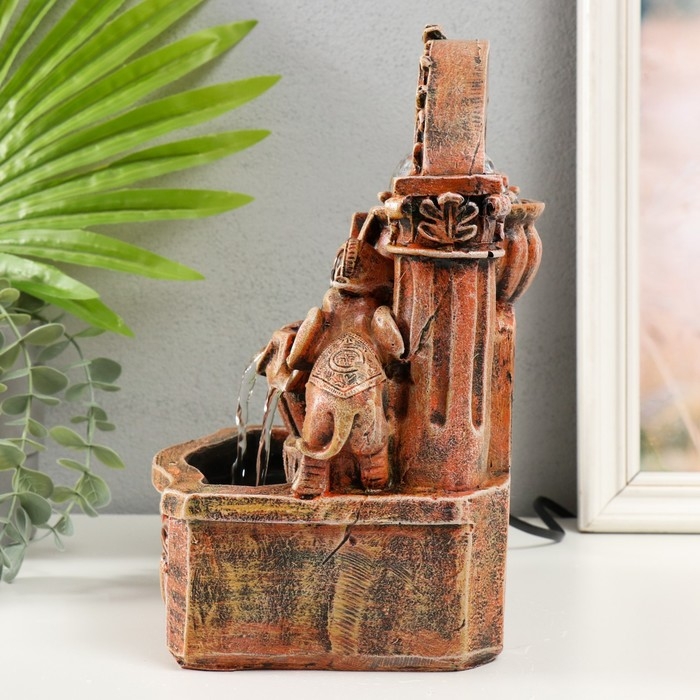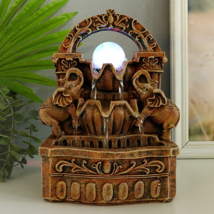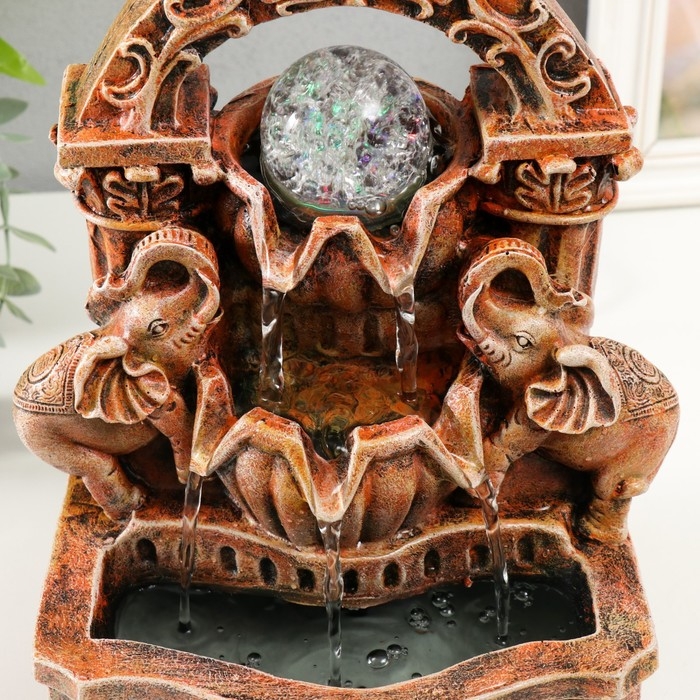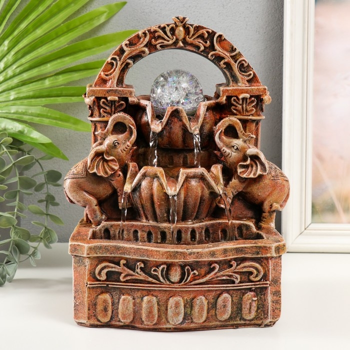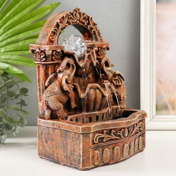 Фонтан настольный от сети, подсветка "Два слона под аркой" 19х14х26 см