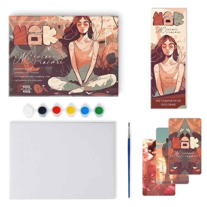 Арт-терапия «Женское счастье» с МАК, 50 карт (7х12 см), холст (22х16,5 см), краски (6 цветов), кисть, 16+