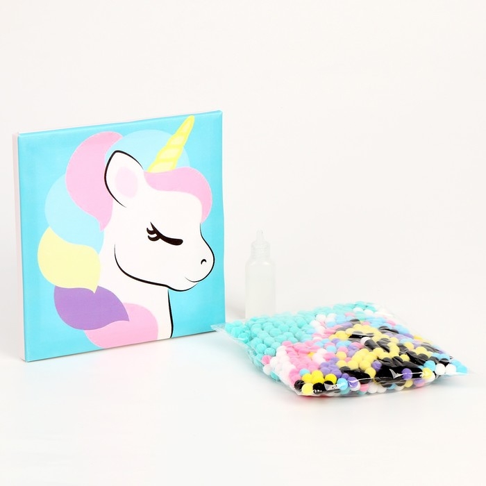 Картина помпонами «Единорог», 20 х 20 см, аппликация помпошками