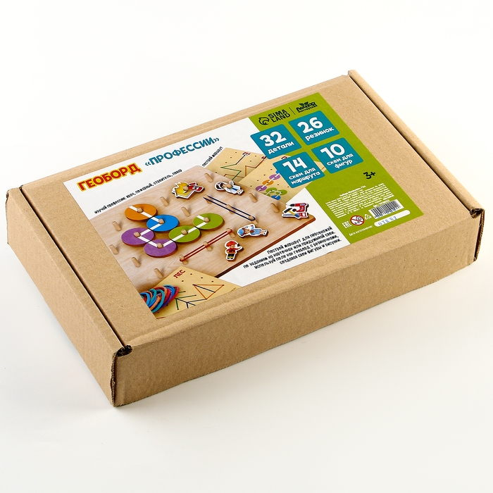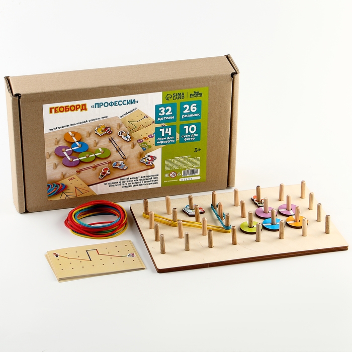 Геоборд — это специальная доска для конструирования различных изображений с помощью равноудалённых друг от друга штырьков и резиночек. Их малышу предстоит нанизывать на выпуклые элементы и создавать таким образом разнообразные фигуры.