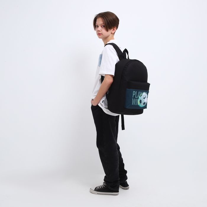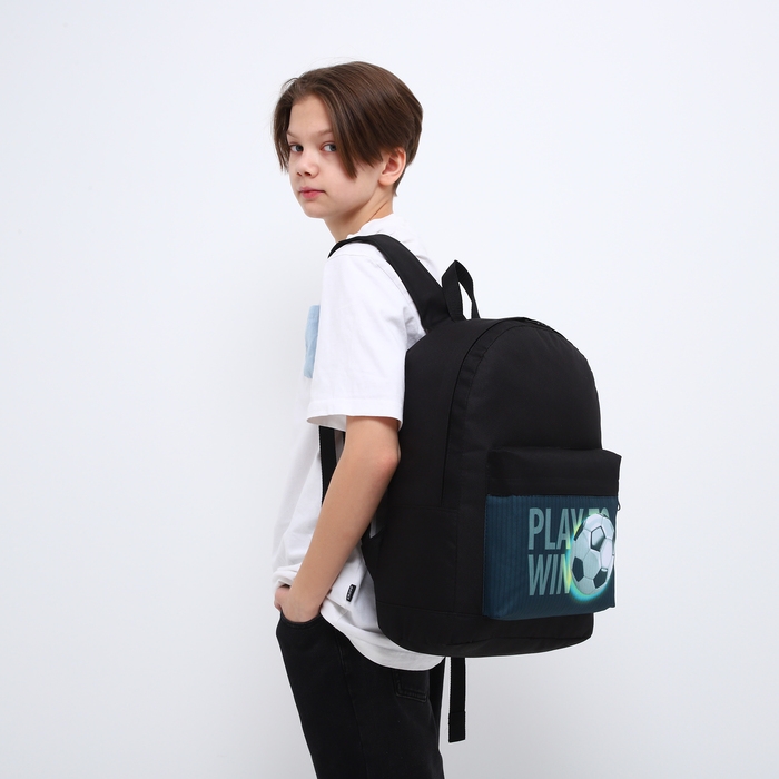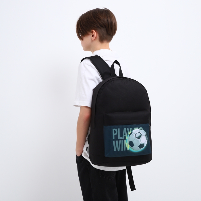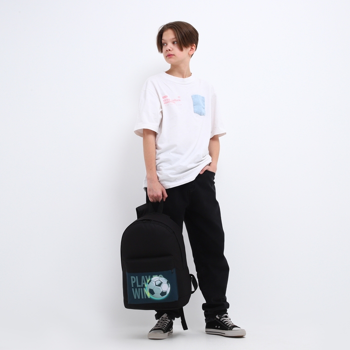 Рюкзак школьный детский для мальчика «Футбол», 33х13х37, отд на молнии, н/карман, чёрный