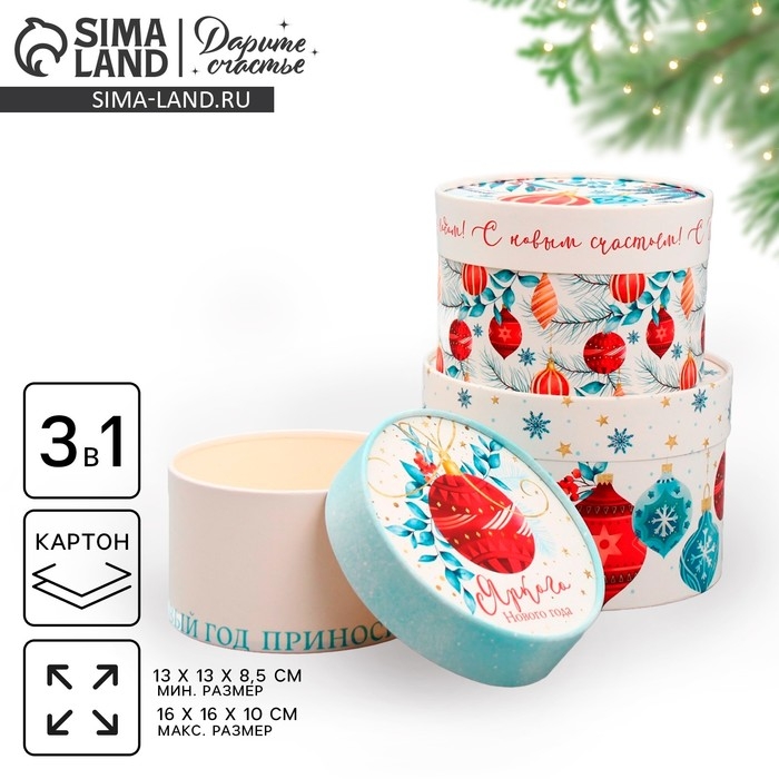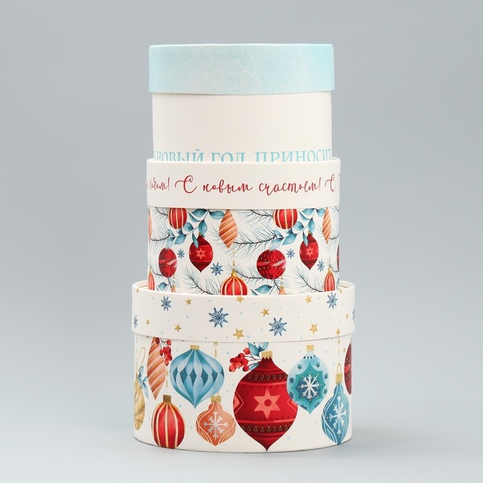 Набор шляпных коробок 3 в 1 «Яркого Нового года», 16 х 10, 14 х 9, 13 х 8,5 см, Новый год