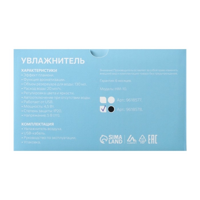 Увлажнитель воздуха Luazon HM-10, эффект пламени, 130 мл, 4,5 Вт, USB, чёрный