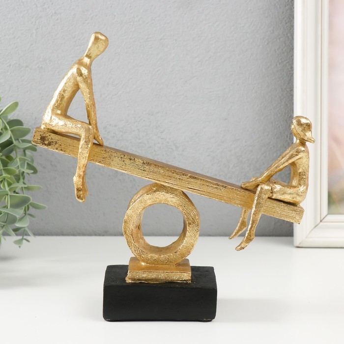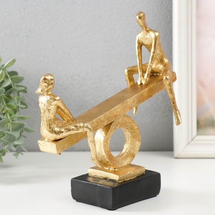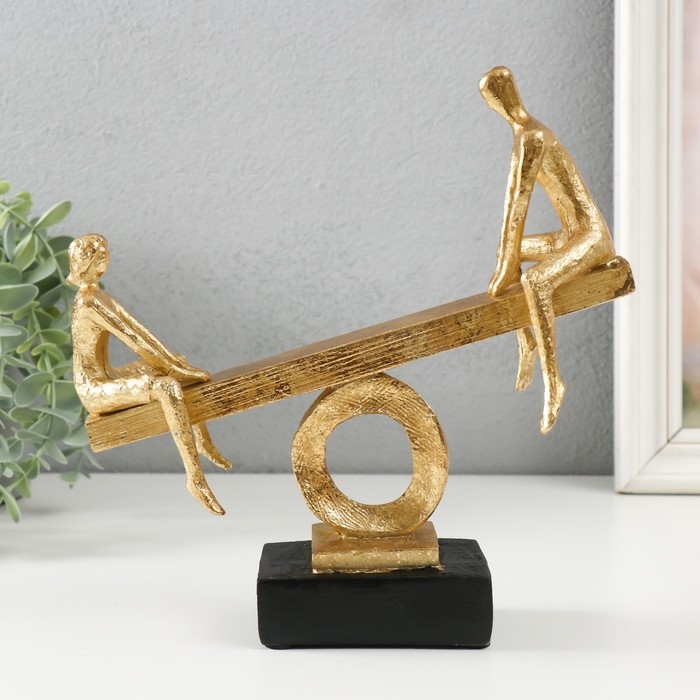 Сувенир полистоун "Двое на качелях-весах" под металл, золото 21х7х22 см
