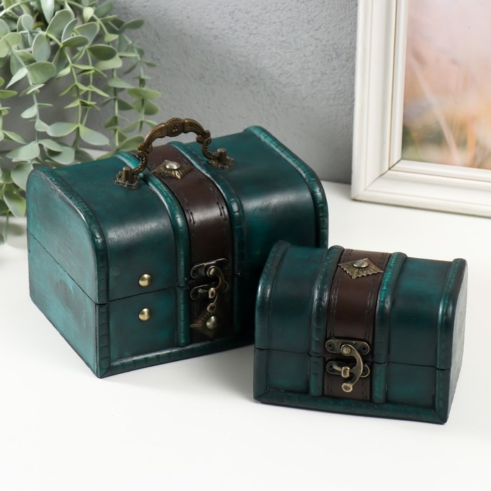 Шкатулка дерево "Ромб" набор 2 шт голубая 7,8х11,8х8 см 11х15,7х11,5 см