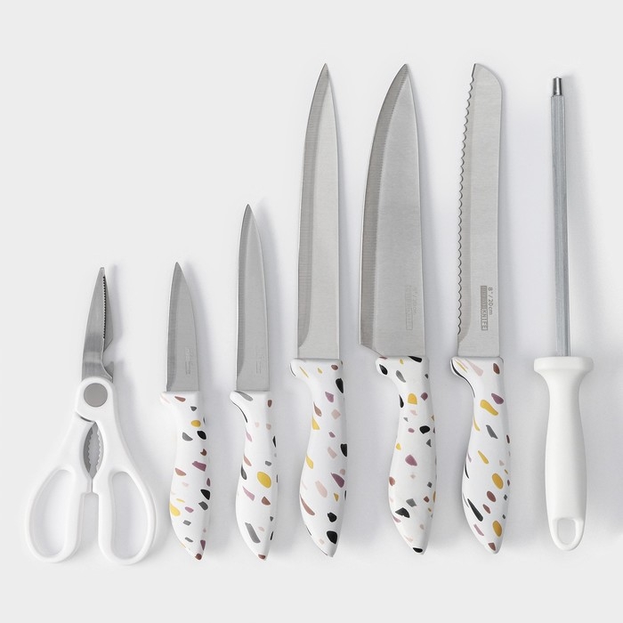 Набор ножей кухонных на подставке Доляна Sparkle, 7 предметов: 5 ножей, мусат и ножницы