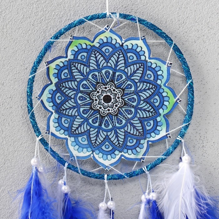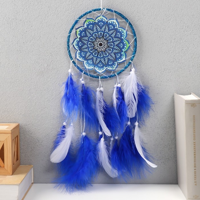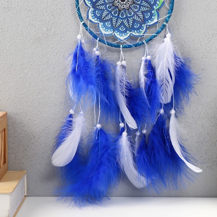 Ловец снов "Мандала с синими перьями" 60х15х0,7 см