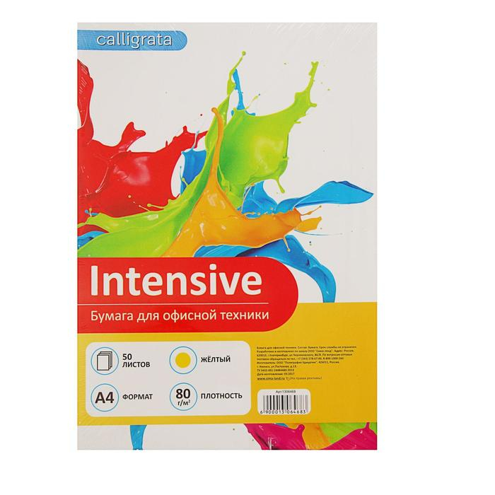 Бумага цветная А4, 50 листов Calligrata Интенсив, жёлтая, 80 г/м²