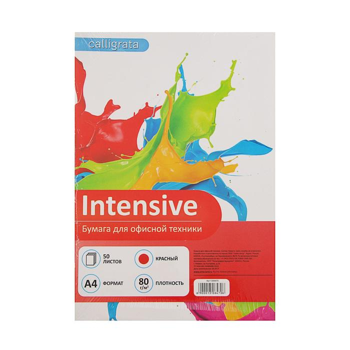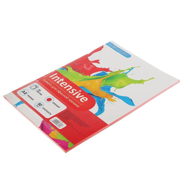 Бумага цветная А4, 50 листов Calligrata Интенсив, красная, 80 г/м²
