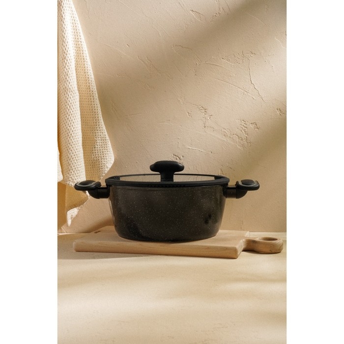 Кастрюля из нержавеющей стали Доляна «Чёрная ночь», 2,2 л, с крышкой