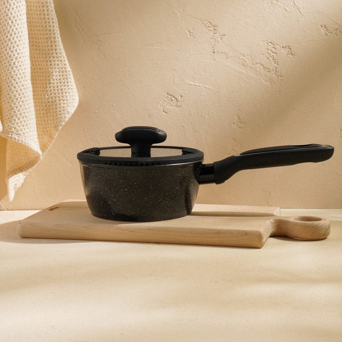Ковш алюминиевый с антипригарным покрытием SL Home, d=16 см, h=7,4 см, индукция, цвет чёрный
