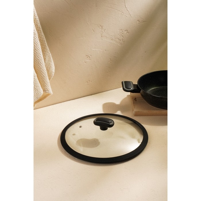 Крышка стеклянная для сковороды и кастрюли Доляна, универсальная с силиконовым, ободком и ручкой, 24/26/28 см, цвет чёрный