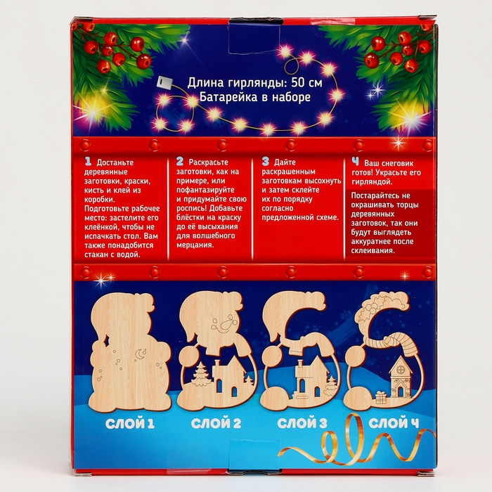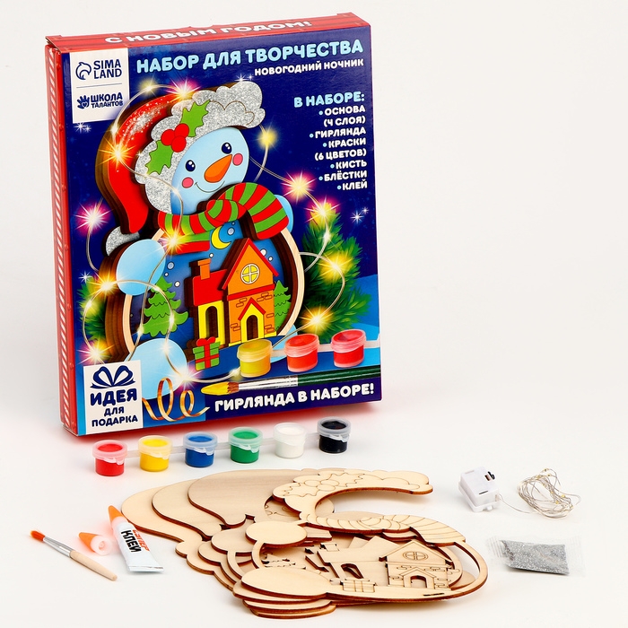 Новогодний набор для творчества. Роспись по дереву «Новый год! Ночник снеговик»