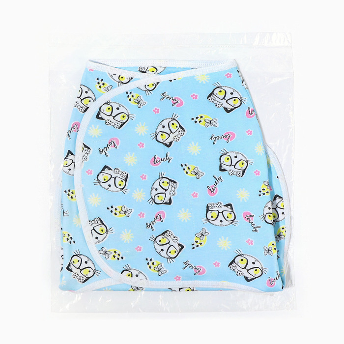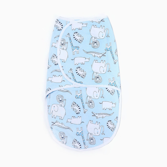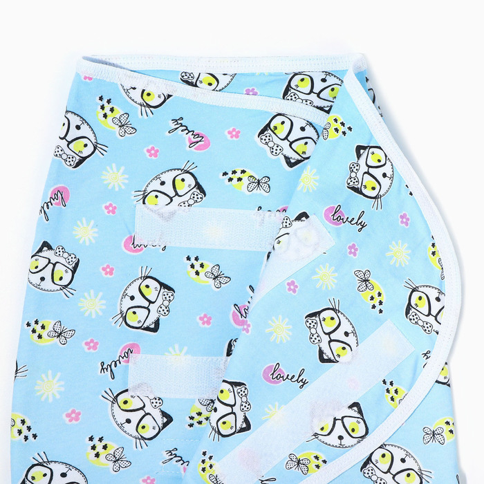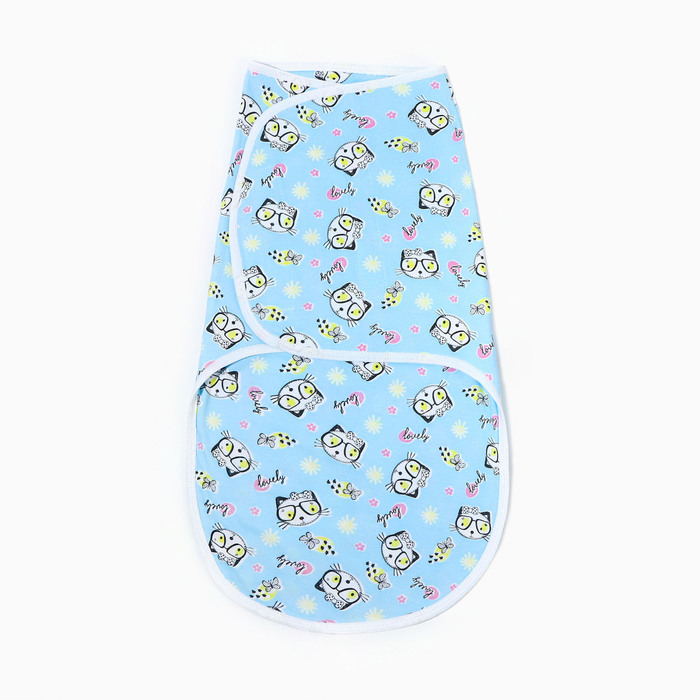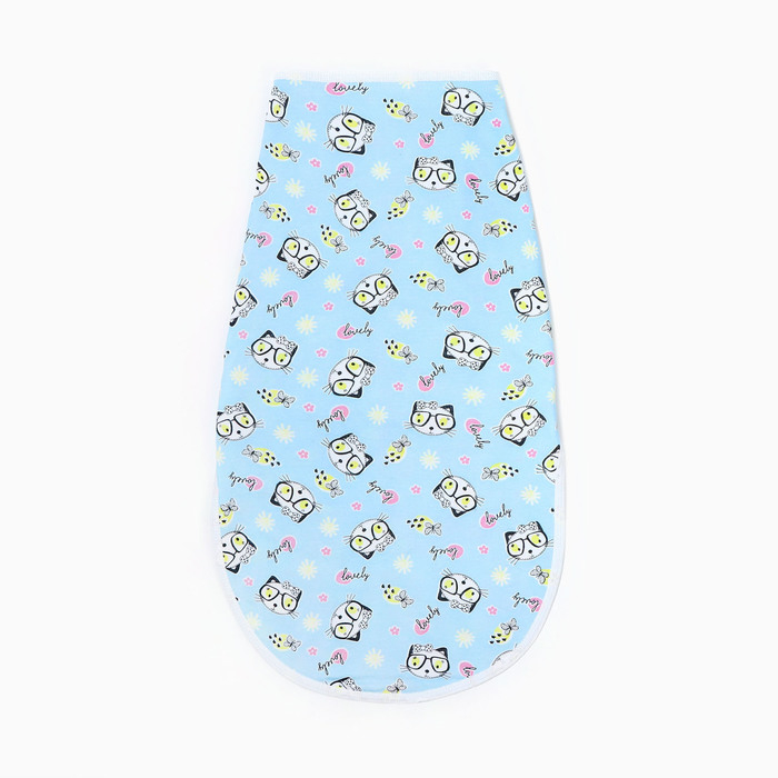 Пеленка-кокон на липучках, рост 50-62 см, кулирка, цвет голубой, принт микс