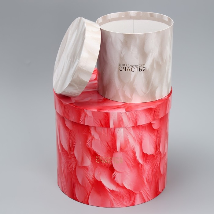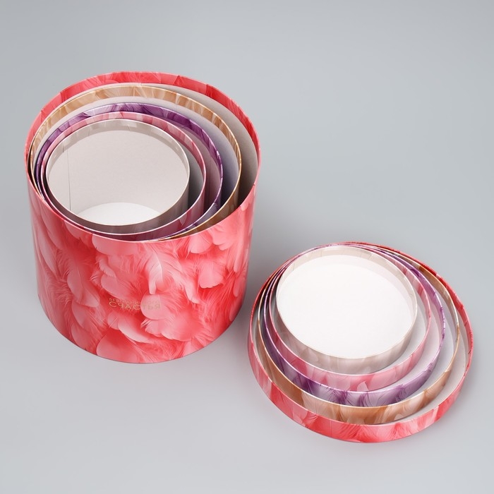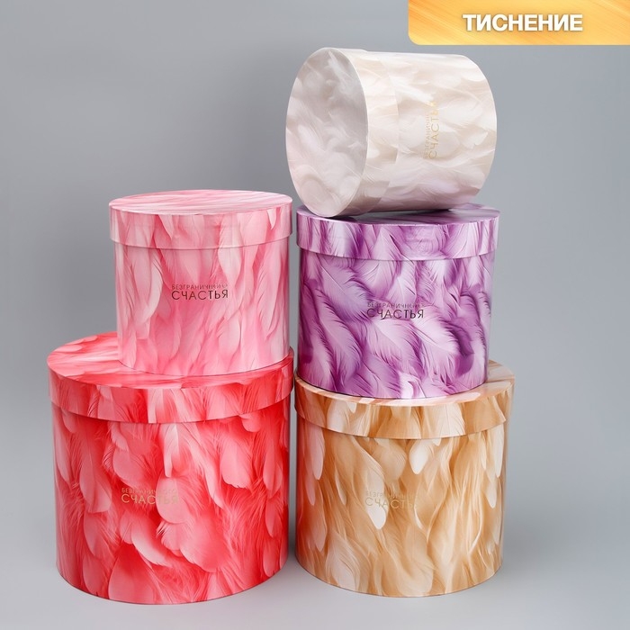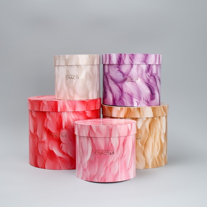 Набор шляпных коробок 5 в 1, упаковка подарочная, «Перья», 13 х 14 ‒ 19.5 х 22 см