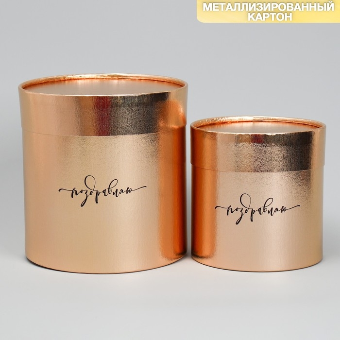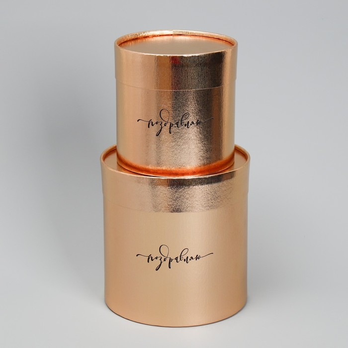 Набор золотых шляпных коробок 2 в 1, упаковка подарочная, «Поздравляю», 12 х 12, 15 х 15 см