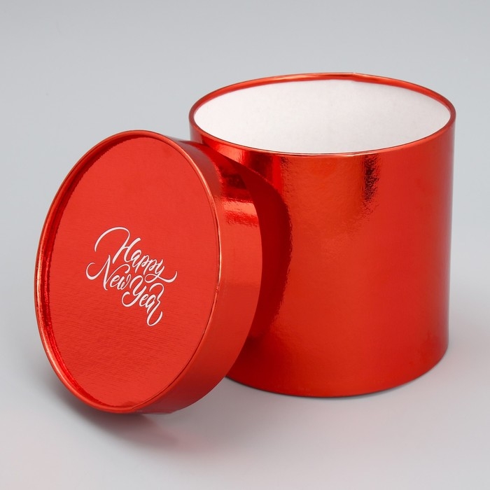 Набор коробок 2в1 круглые Happy New Year, красный металлик, 12 х 12, 15 х 15 см, Новый год