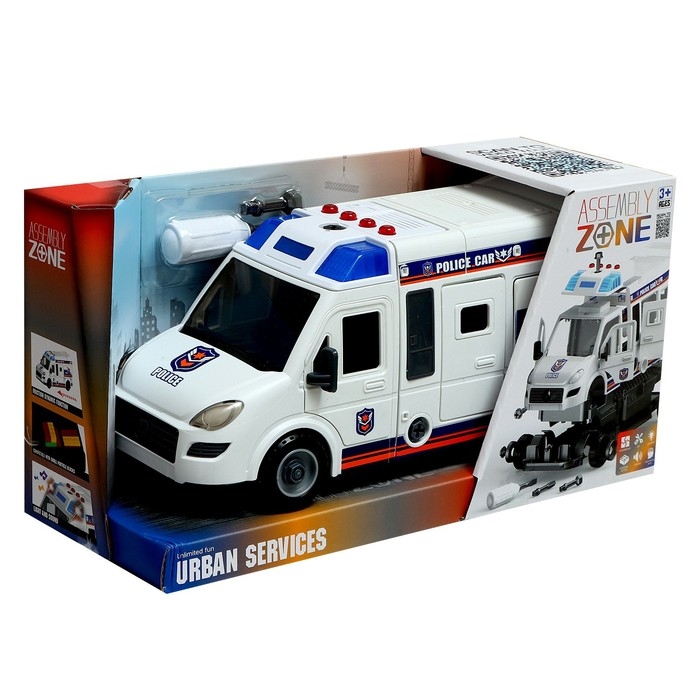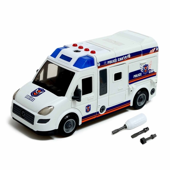 Конструктор винтовой «Полицейский фургон», свет, звук, инерция, 50 деталей