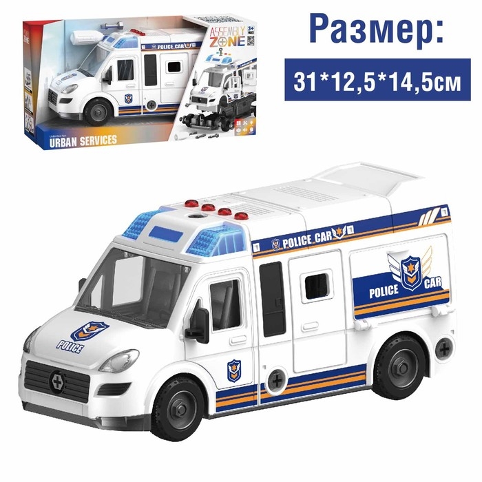 Машина «Полицейский фургон» во главе с малышом уже спешит наказывать бандитов и спасать мир от зла! Игрушка вызовет яркие эмоции у ребёнка и заставит его почувствовать себя настоящим сотрудником полицейской службы. Винтовой конструктор — это увлекательная яркая игрушка, которая обязательно порадует ребёнка! Ведь малыш самостоятельно сможет разобрать и собрать её с помощью инструментов, имеющихся в наборе.