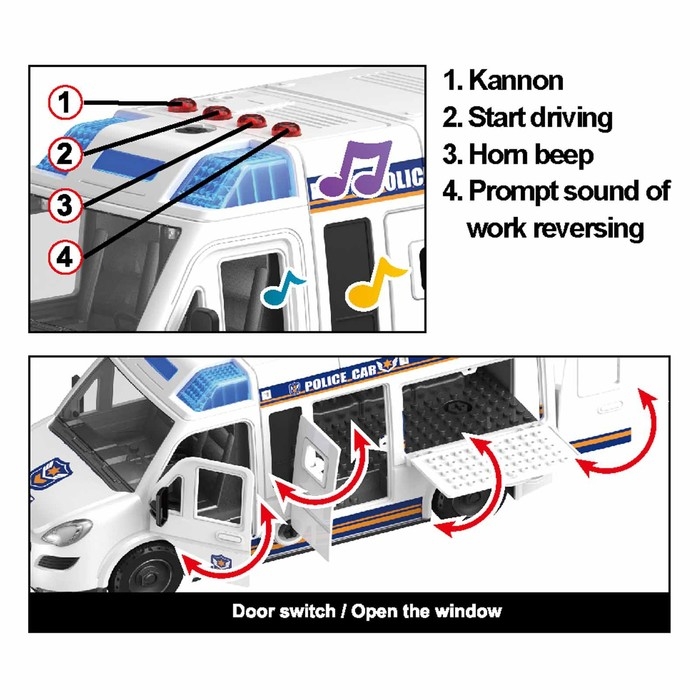 - Звуковые эффекты: воспроизводит 1 мелодию, звуки сигнала, работающего мотора, звук заднего хода.