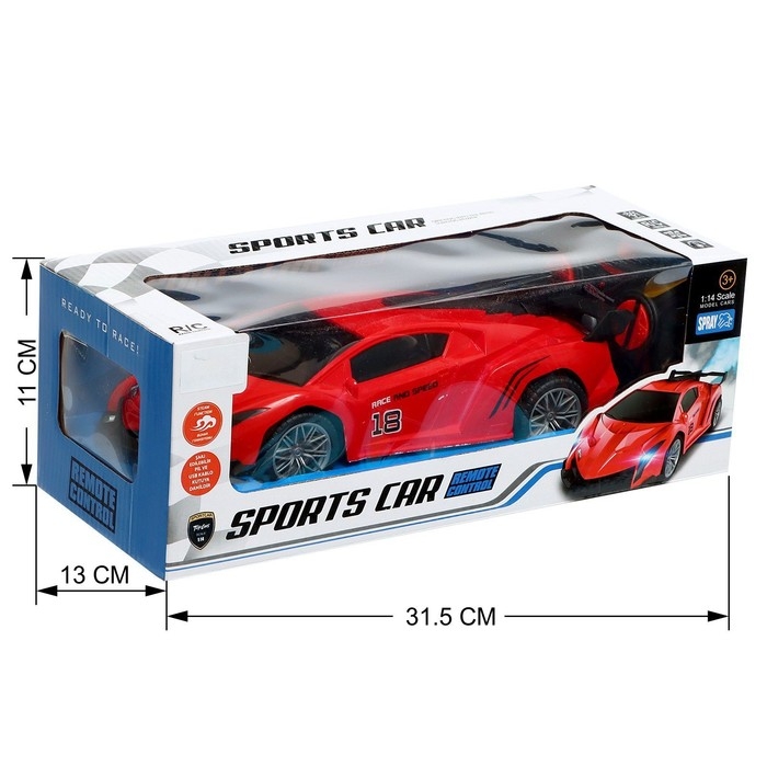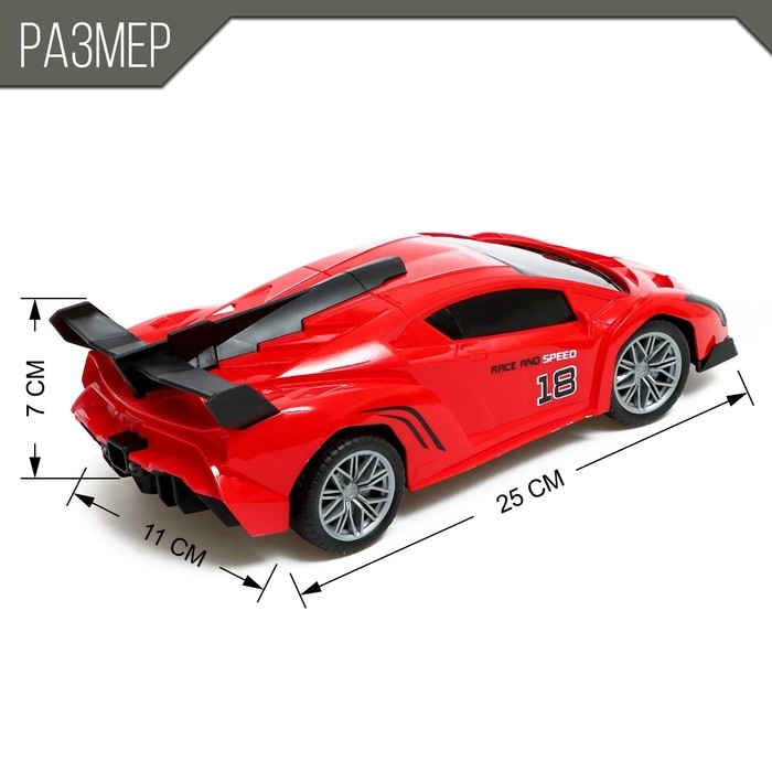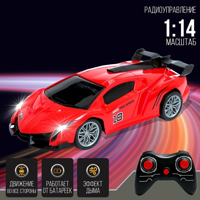 Машина радиоуправляемая «Спорткар», свет, эффект дыма, работает от аккумулятора, цвет красный