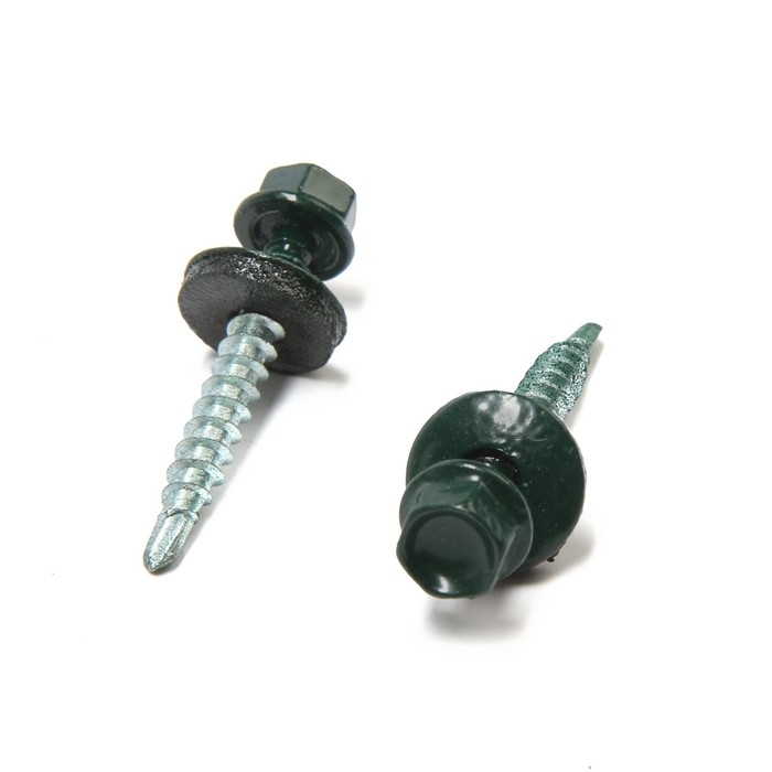Саморезы кровельные 4,8х30 мм, RAL6005 цвет зеленый, 200 шт.