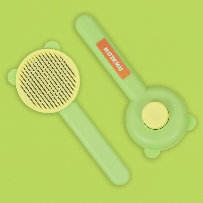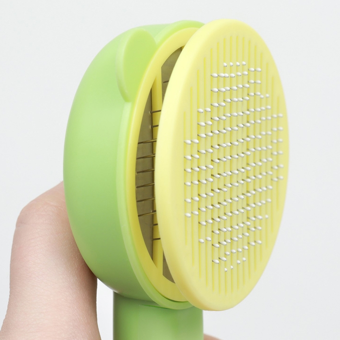 Пуходёрка пластиковая "Кошка" с функцией самоочистки, 8,5 х 20 см, зелёная