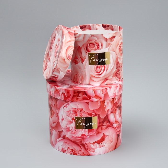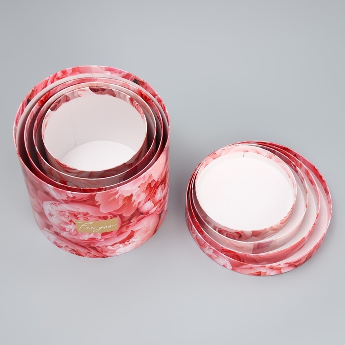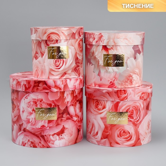 Набор шляпных коробок для цветов 4 в 1, упаковка подарочная, «Нежные цветы», 14 х 13 см - 20 х 17,5 см