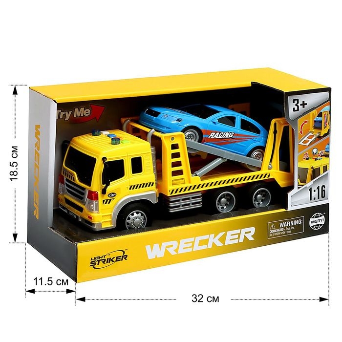 Грузовик инерционный «Эвакуатор», 1:16, с машиной, свет, звук