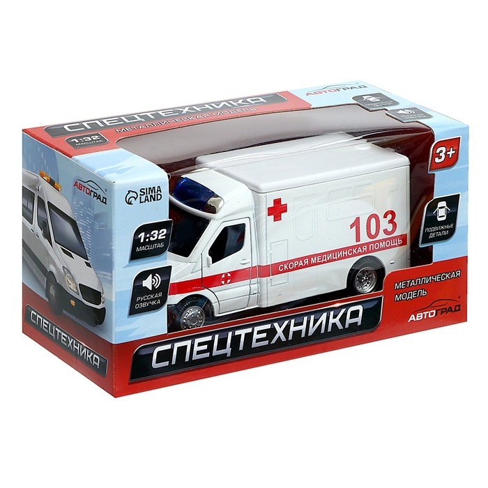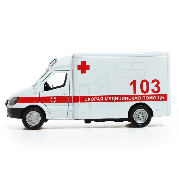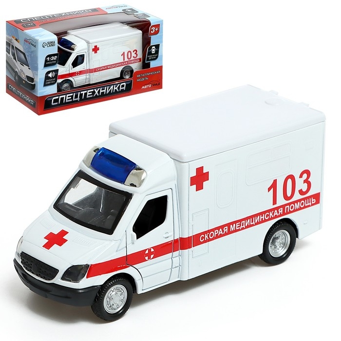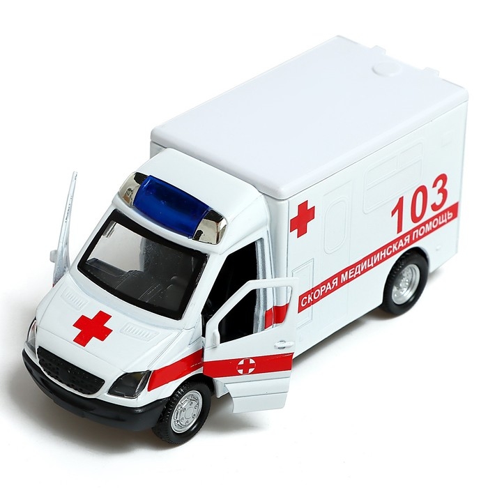 Машина металлическая «Скорая», 1:32, свет и звук, инерция, открываются двери