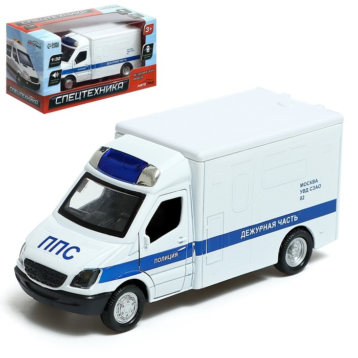Машина металлическая «Полиция», 1:32, инерционная, световые и звуковые эффекты, русская озвучка, открываются двери, цвет белый