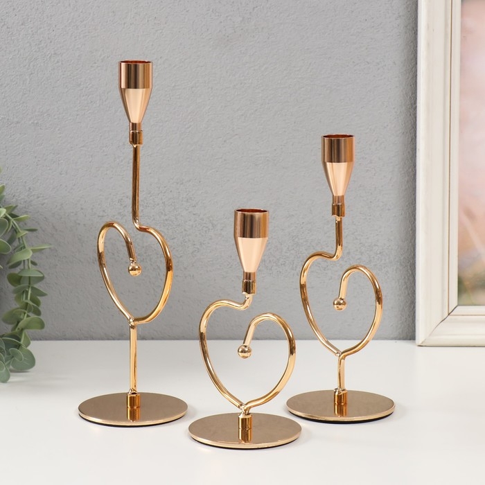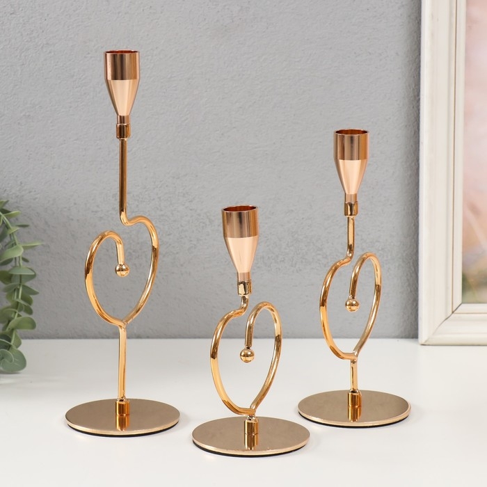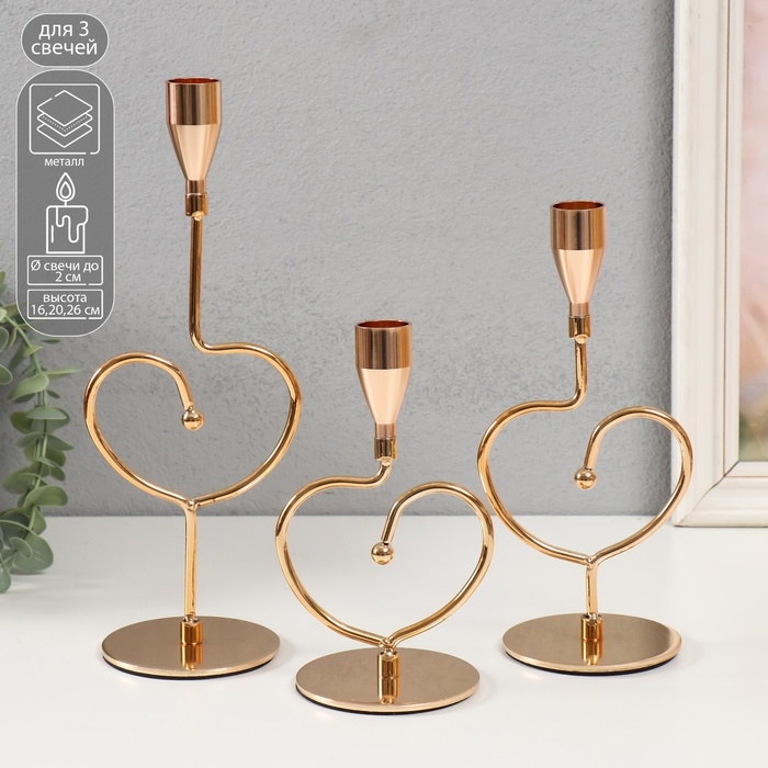 Подсвечник металл "Аврелия" набор 3 шт золото d=2см высота 26; 20,5; 16,5 см 9,5х8х26 см